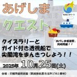 尖閣湾を一望できる揚島遊園において「クイズラリー」と「ガイド付き透視船ツアー」を実施します。
