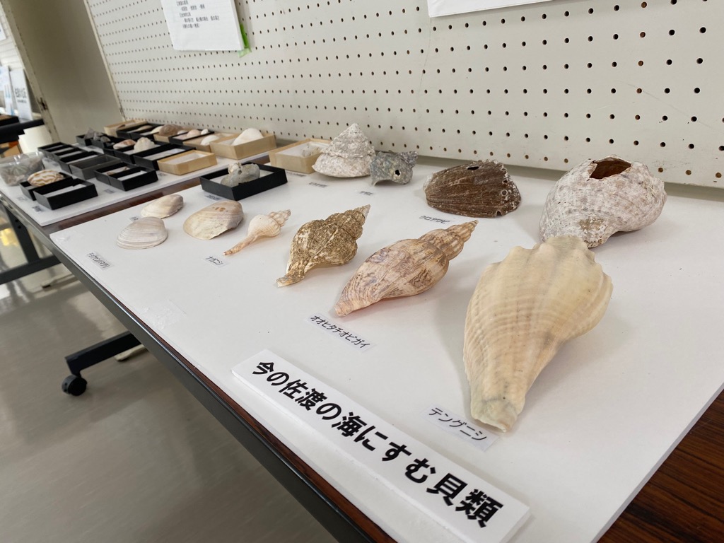 また、佐渡ジオパークセンターでは佐渡で見られる貝や岩石の標本を展示中です。岩石を拡大して観察できる顕微鏡コーナーや生き物の折り紙コーナーもありますので、お子さんの夏休みの自由研究にもご活用ください!